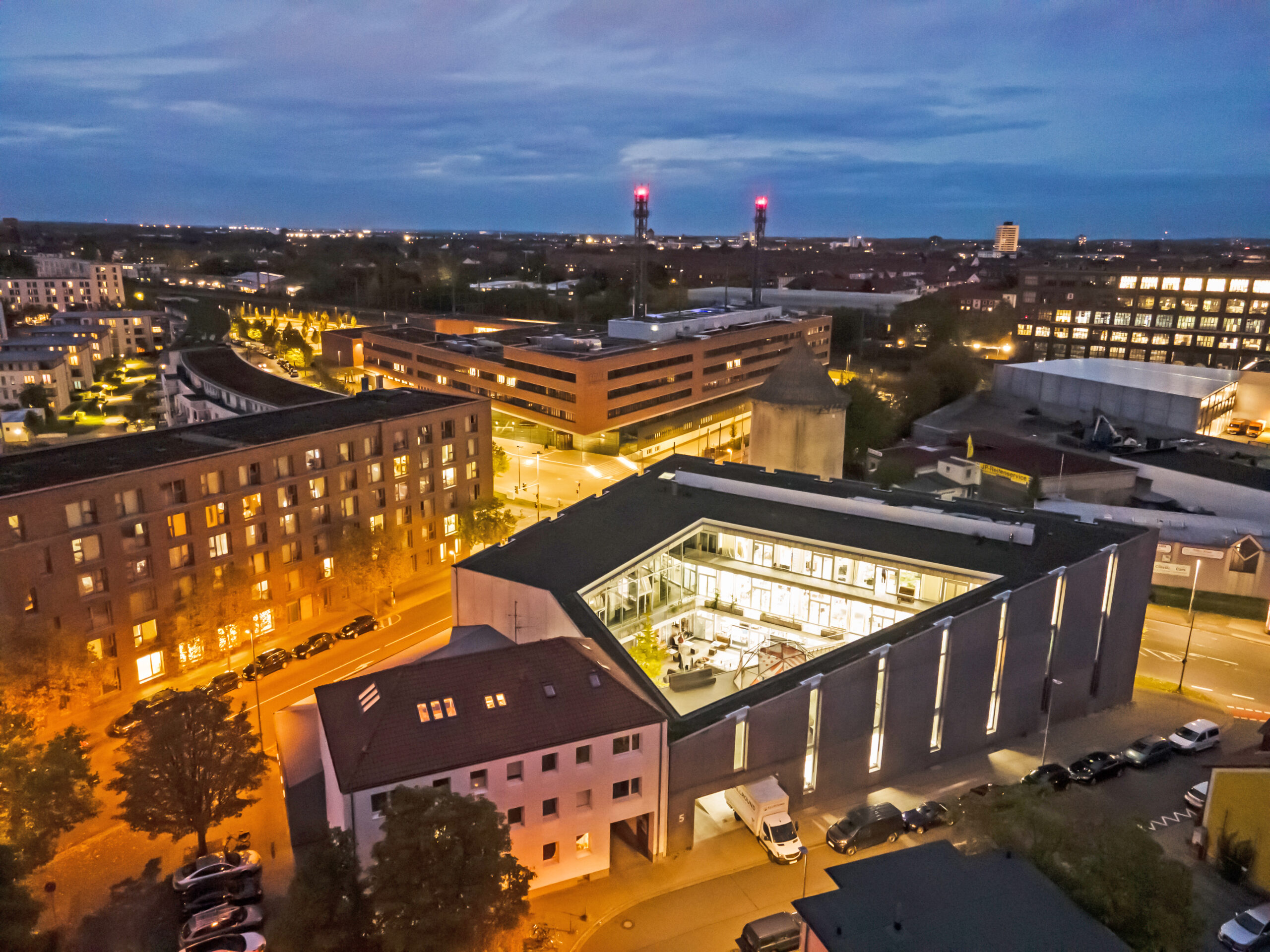 Kunst, Architektur und Design gehören im „Hafven“ zum Konzept. Hier arbeiten Selbstständige, Start-up-Gründer und Handwerker an ihren Projekten und Geschäftsideen, hier treffen sich Studenten und Mitarbeiter vieler Unternehmen zu Schulungen und Workshops. Kreativität steht in den offenen Büroflächen, Werkstätten, im Atrium und im angeschlossenen Café im Mittelpunkt. „Unsere Verbindung zur Kunst ist sehr eng. Wir wollten schon immer was Cooles mit dem Aufzug machen“, bestätigt CEO und Mitbegründer Jürgen Pleteit. Deshalb haben die Betreiber den KONE-Aufzug seinerzeit mit einer schlichten Zinkalkabine bestellt: Deren unbearbeiteten Metalloberflächen mit sichtbaren Herstellungsspuren versprühten bis jetzt kühlen Industriecharme.