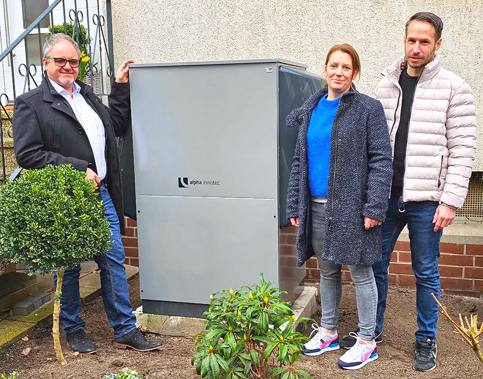 Alles reibungslos und entspannt gelaufen. So sehen glückliche Kunden aus: Hier mit Daniel Stanitzok, DWPP-Geschäftsführer und der neuen Wärmepumpe (Foto: dwpp)