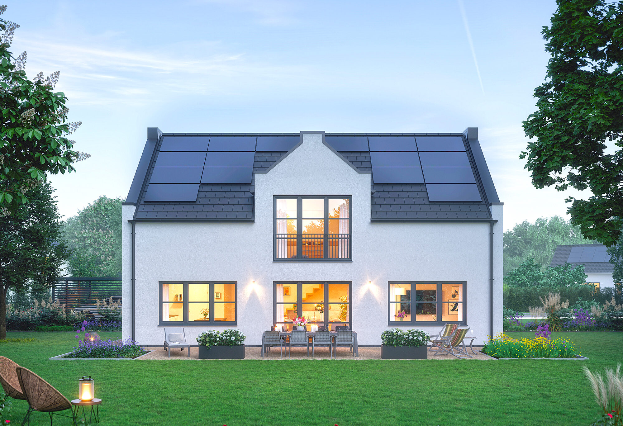Zudem sind jetzt alle Häuser ausnahmslos Smart Homes. Ein KI-gesteuertes Home Energy Management System (HEMS) – bei den Serien MyStyle und Selection inklusive, bei den Complete-Häusern nachrüstbar – kombiniert die eigene Stromerzeugung mit dynamischen Stromtarifen und sorgt damit für einen besonders effizienten Eigenverbrauch des Sonnenstroms. Eine Wallbox für das Aufladen des Elektroautos bei den Hausserien MyStyle und Selection ist ebenfalls inklusive, bei den Complete-Häusern vorbereitet. Auch die Nachhaltigkeit, schon seit vielen Jahren ein Herzens- anliegen von Viebrockhaus, hat noch ein „Upgrade“ erhalten. So werden nur noch Bio-PVC-Fenster in allen Häusern verbaut, durch innovative Technologien der Betonverbrauch – und damit auch die CO2-Emissionen bei der Betonherstellung – deutlich reduziert. Nicht zuletzt erhalten Viebrockhaus-Bauherren als besonderes Geschenk einen Wertgutschein für eine nachhaltige Vorgartenplanung vom renommierten Planungsbüro Davit Arican.